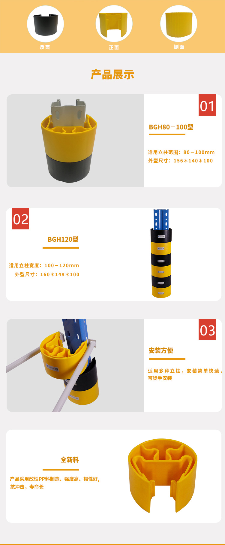 貨架立柱塑料護腳 廠家直銷 安全 美觀 大氣 韌性好 適用于各類倉庫貨架使用(適用于80 90 100 110 120立柱)塑料護腳H=100mm(具體尺寸見下圖),黃色黑色可搭配使用 全新料 單次訂購數(shù)量超過50套送專業(yè)護腳工具鉗一套。