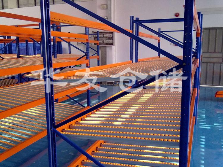 輥輪式貨架適合生產(chǎn)流水線或裝配線上及小包裝成品物料的存放,物料依靠重力沿輥輪下滑,操作方便,先進先出。
